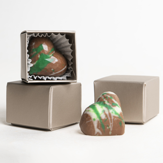 - Handdekoriert – grüne Details aus unserer Manufaktur verleihen der Praline einen einzigartigen, künstlerischen Charakter.