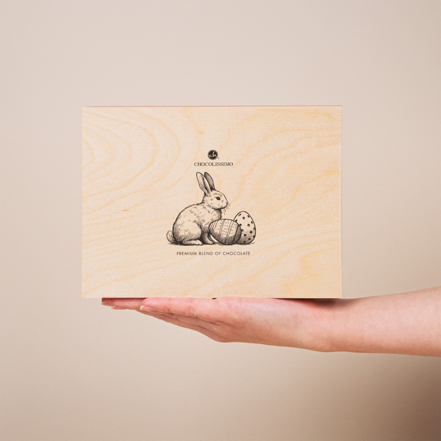 Es ist nicht nur eine Gaumenfreude, sondern auch ein personalisiertes Geschenk – auf dem Deckel der Kiste können wir deinen individuellen Gravur platzieren, die das Geschenk einzigartig macht. Abgerundet wird das Ganze durch eine charmante Gravur eines österlichen Hasen, die die festliche Stimmung unterstreicht.
