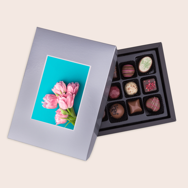 Die 'ChocoPostcard Midi - Silber' eignet sich hervorragend als edles Geschenk für jeden Anlass. Die Verpackung alleine, in edlen Silber gehalten, versprüht geradezu Eleganz. Darüber hinaus lässt sich der Deckel der 'ChocoPostcard' mit einem eigenen Foto versehen, sodass das Geschenk eine sehr persönlich Note erhält. Einfach ein Foto hochladen - wir drucken es aus und arbeiten es in die Verpackung ein!