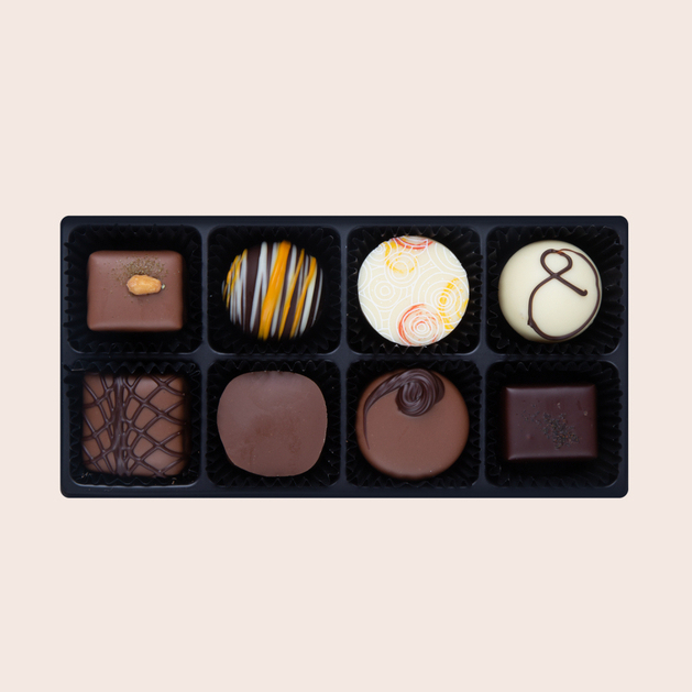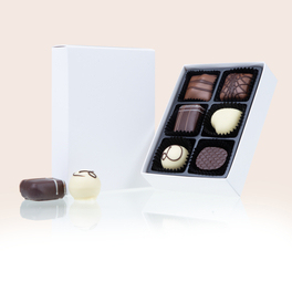 Kleine Aufmerksamkeiten erhalten die Freundschaft, wie man so schön sagt. Die 'White XL' ist dafür ideal. Die schlichte aber edle weiße Schachtel macht bereits eine Menge her - doch die Krönung ist selbstverständlich der Inhalt. Die acht edlen und handgefertigten Pralinen mit unterschiedlichen exquisiten Füllungen schmeicheln Gaumen und Auge!