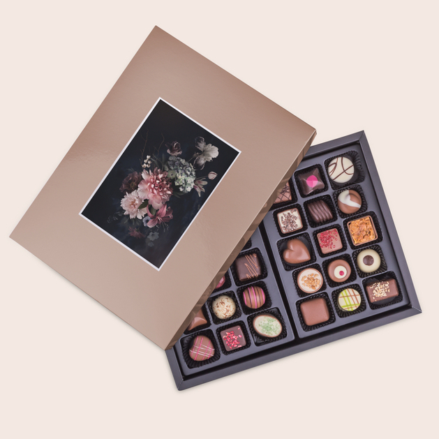 Bevor wir erklären, warum unsere Kunden die Foto-Schokoladen Maxi lieben, verraten wir, was diese besondere Schachtel enthält. Innen erwarten Sie: