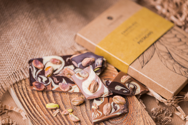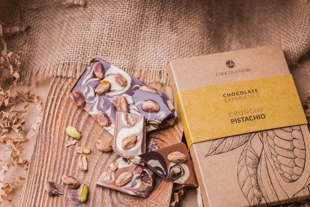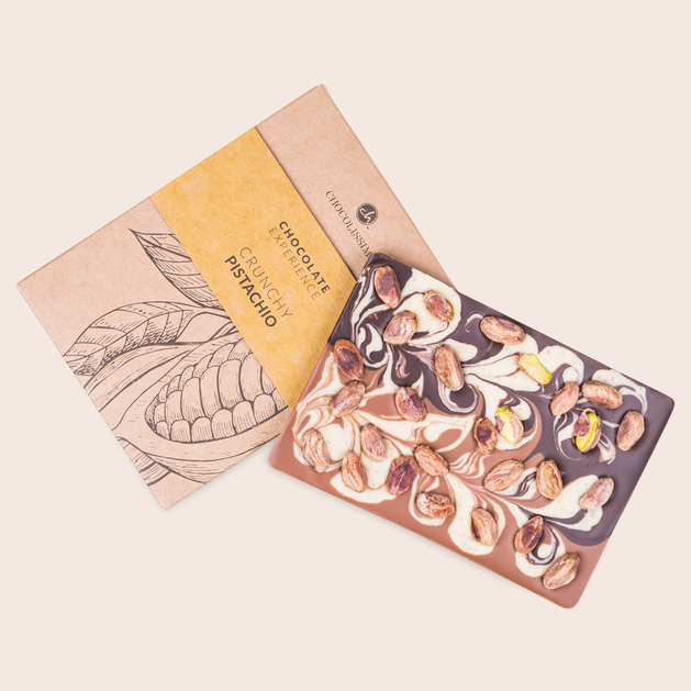 Schokoladentafel mit Pistazien – Luxusgenuss in natürlicher Verpackung