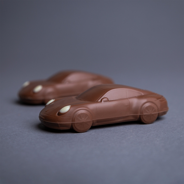 Eine süße Miniaturausgabe unseres mini Schokoladenporsche. Das kleine Schoko-Auto ist in einer Plastikschachtel mit weißem Geschenkband verpackt. Es ist ein schönes Geschenk für Autoliebhaber zu den verschiedensten Anlässen!