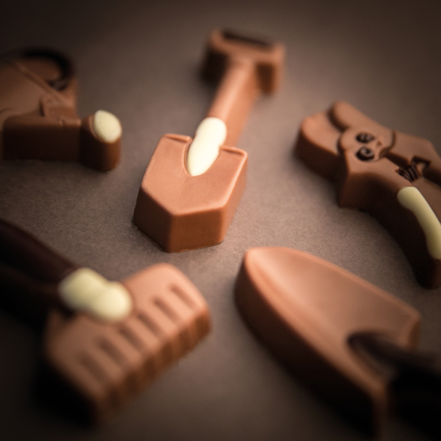 Zartschmelzende Gartenwerkzeuge aus Schokolade