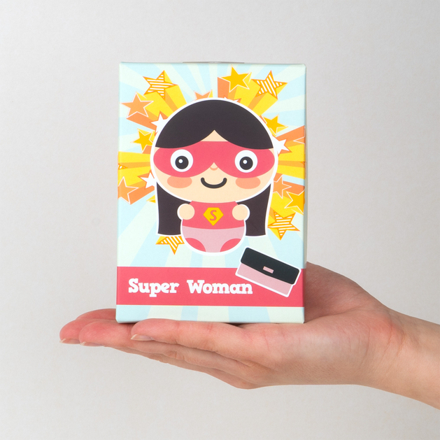 - Fröhliche Verpackung – Die bunte Schachtel mit Super Woman-Motiv zieht die Blicke auf sich und gibt Energie.
