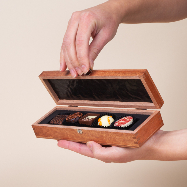 Handverpacktes Kästchen mit Schokoladenpralinen 1 Handverpacktes Kästchen mit Schokoladenpralinen 2