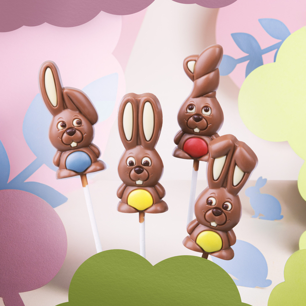 Gestalten Sie eine besondere Osterdekoration mit unseren Schokoladen-Lollihasen