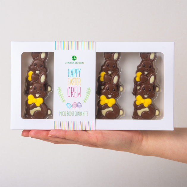 Im Set der Oster-Schokoladenhasen sind enthalten: