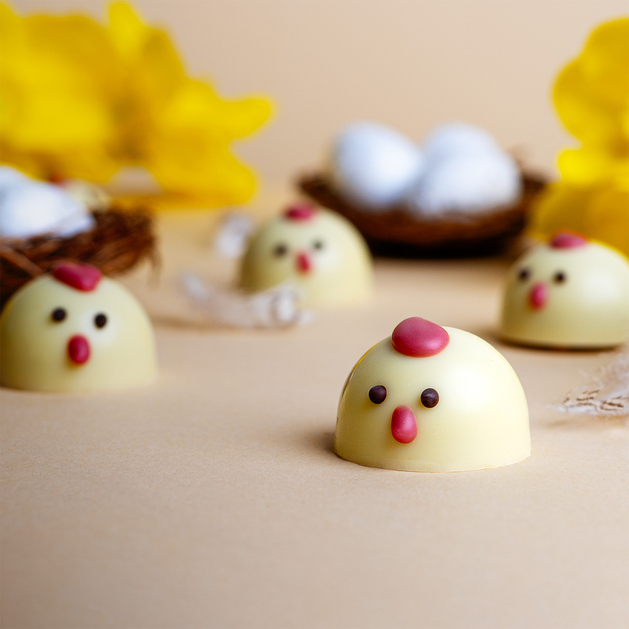 - Handgefertigte Pralinen in Form von Osterei-Küken