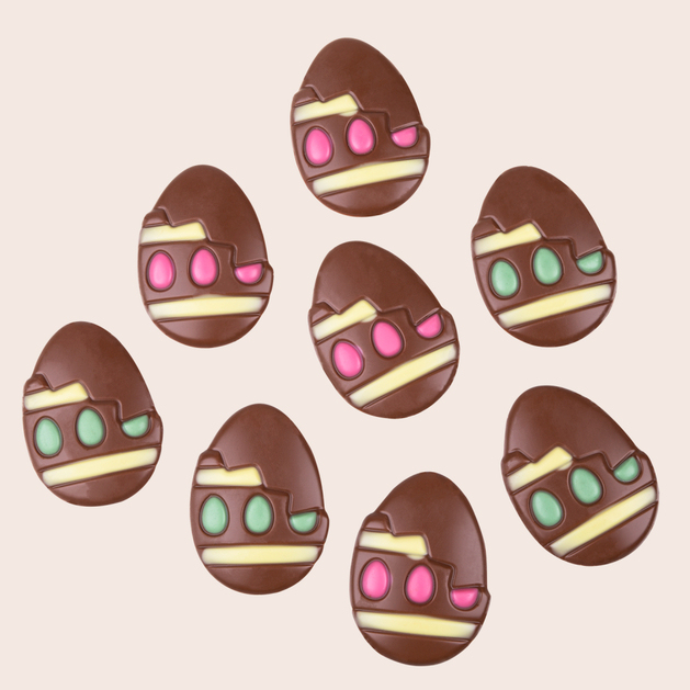 Aus hochwertiger belgischer Schokolade hergestellte Ostereier werden den Ostertisch perfekt schmücken