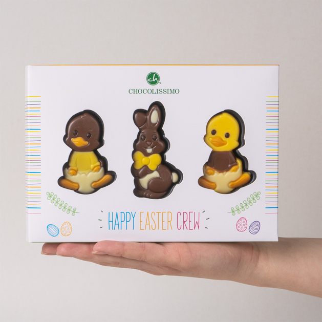 Ostern ist eine Zeit der Freude, und was könnte besser sein, als den Liebsten ein besonderes Set voller süßer Leckereien zu schenken? Unser Set mit 3 Ostern Schokoladenfiguren enthält: ein Häschen aus Vollmilchschokolade mit einer weißen Schokoladenakzentuierung und zwei Entchen in verschiedenen Schokoladengeschmacksrichtungen*. Es ist eine perfekte Geschenkidee oder eine hübsche Dekoration für den Ostertisch.