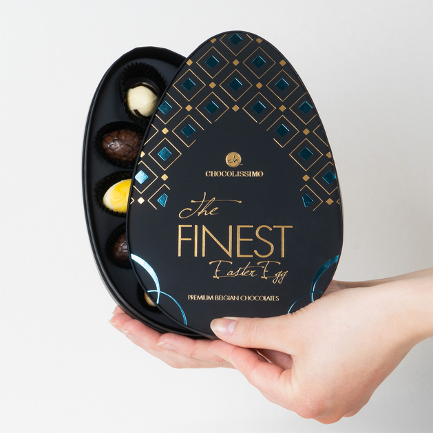 Suchen Sie nach einem eleganten Ostergeschenk? The Finest Easter Egg Mini mit Pralinen-Eiern in Blau ist die perfekte Wahl für Schokoladenliebhaber. In einer dekorativen Ei-Verpackung finden Sie 11 handverlesene Pralinen, die unter der Aufsicht der besten europäischen Chocolatiers aus hochwertigster belgischer Milch-, Zartbitter- und Weißschokolade hergestellt wurden. Jede Praline ist ein kleines Kunstwerk, das sowohl mit seinem Aussehen als auch mit seinem einzigartigen Geschmack begeistert.
