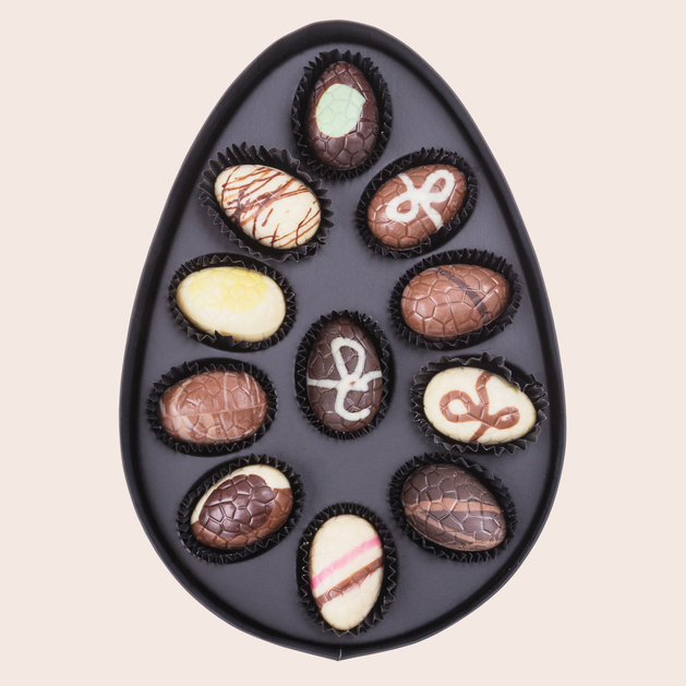 - Handverlesene Pralinen in Eiform – hergestellt von den besten europäischen Chocolatiers