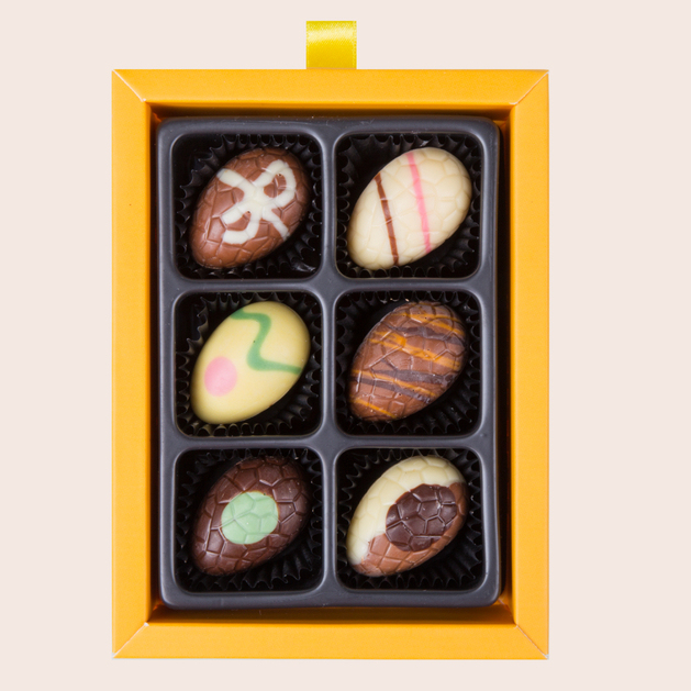 Schenken Sie Ihren Lieben 6 Schokoladenpralinen in Eiform, die dieses Osterfest noch süßer machen!