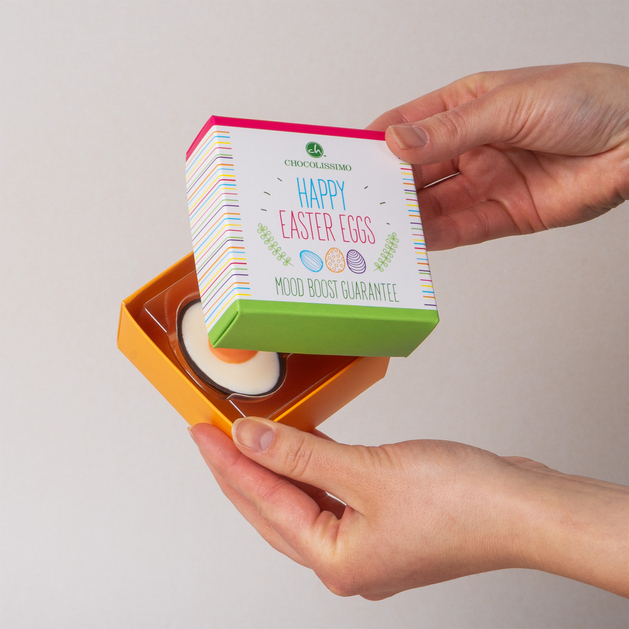 Überraschen Sie Ihre Liebsten mit einem besonderen Geschenk zu Ostern – das Set von 2 Ei-Hälften aus Schokolade ist eine elegante Dekoration für den Ostertisch oder eine süße Überraschung im Osternest.