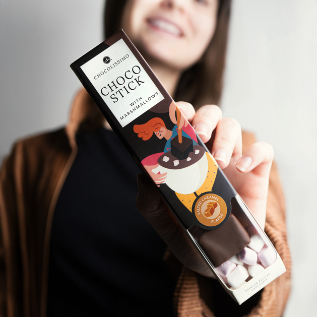 Salted Caramel ChocoStick – Schmelzende Milchschokolade mit Salzkaramellgeschmack und Marshmallows am Stiel