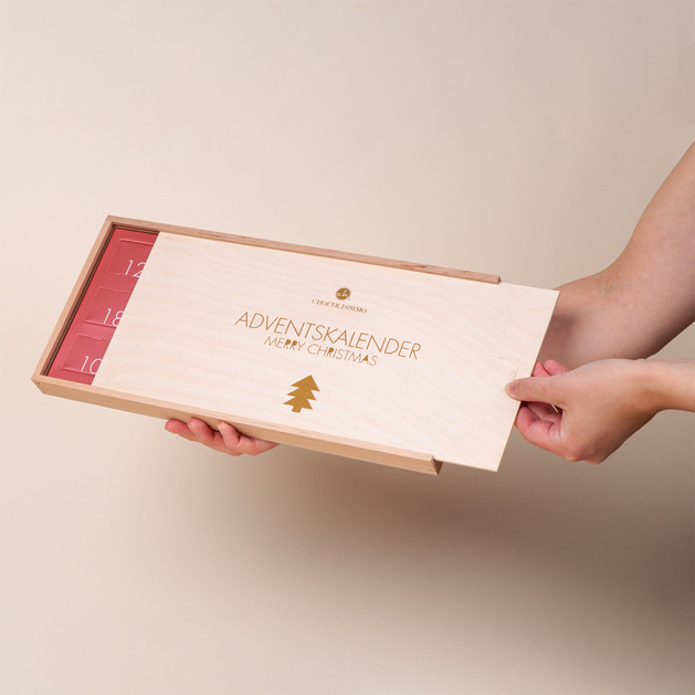 Adventskalender in Holzbox mit Gravur – Ein Klassiker in eleganter Ausführung