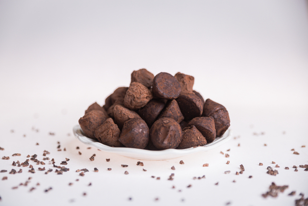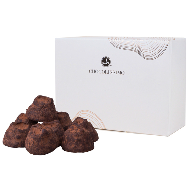 Jeder Trüffel wird in sorgfältiger Handarbeit hergestellt, so dass jedes Stück ein kleines Schokoladenkunstwerk ist