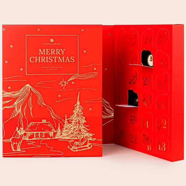 - Klassisches Layout mit Fenstern – das tägliche Entdecken von Pralinen wird zu einem einzigartigen Adventsritual.