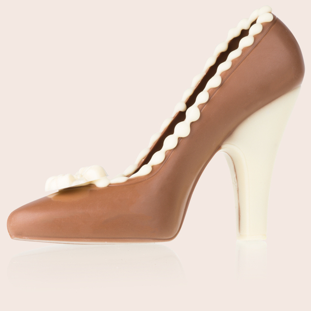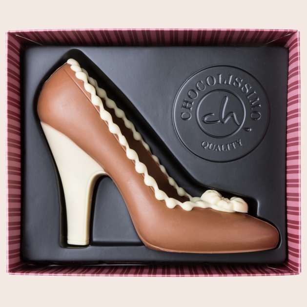 Dieser Stiletto lässt Frauenherzen höher schlagen, denn er verbindet edles Schuhdesign mit köstlicher Schokolade. Der Schuh besteht aus feinster Vollmilchschokolade. Einzelne Details, wie der Absatz und die Borte bestehen aus zartschmelzender weißer Schokolade. Eine wahre Freude für Gaumen und Auge!