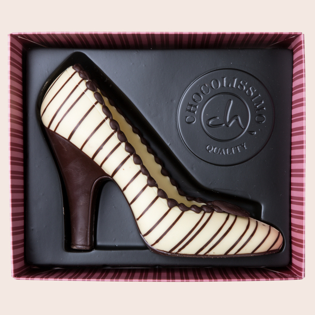 Weiße Schokoladenschuh High Heel – elegant verpackt für besondere Anlässe
