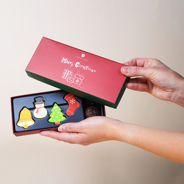 Unser Set weihnachtlicher Schokoladen mit Drucken enthält:
