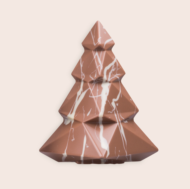 Luxuriöser Tannenbaum aus Vollmilchschokolade mit vier klassischen Pralinen