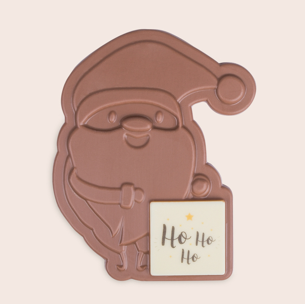 Genießen Sie mit unserer einzigartigen, handgefertigten Weihnachtsschokolade eine köstliche und festliche Leckerei! Diese wunderschöne Tafel ist aus zarter Milchschokolade geformt und stellt den Nikolaus dar. Doch das ist nicht alles - unten befindet sich eine quadratische Tafel aus weißer Schokolade mit der fröhlichen Aufschrift 'Ho Ho Ho'.