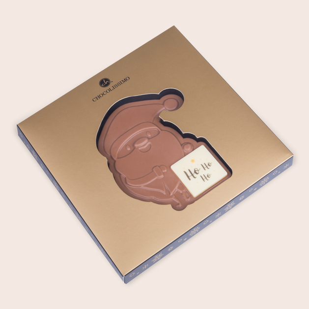 Verleihen Sie Ihrem Weihnachtsfest einen besonderen Touch mit unserer Santa Schokolade mit Puzzle und der zusätzlichen Überraschung in Form der 'Ho Ho Ho'-Tafel aus weißer Schokolade. Frohe Weihnachten!