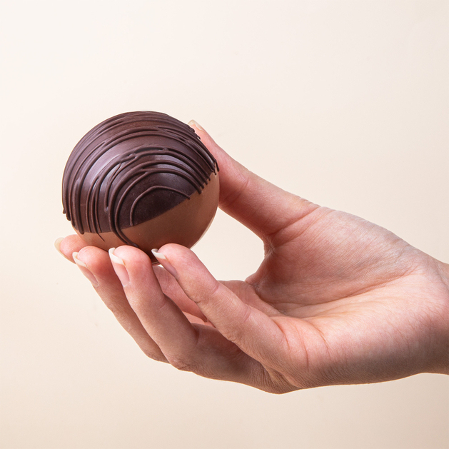 - Handgemachte Schokoladenkugel mit Marshmallows – zarte Marshmallows, hergestellt unter der Aufsicht erfahrener Chocolatiers.