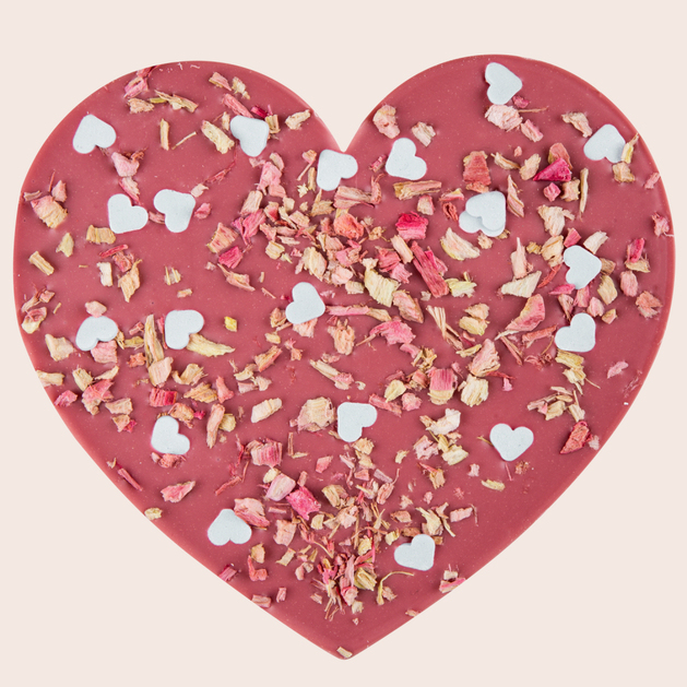 Das Schokoladenherz aus einer anderen Dimension: Ruby Herz mit Rhabarber! Eine feine Note von Rhabarber in perfekter Harmonie mit der Schokolade und dekoriert mit kleinen Zuckerherzen macht dieses Schokoladenherz zu einem ganz speziellen Geschenk! Ideal zum Valentinstag oder jedem anderen Anlass, wenn es ein sehr spezieller sein soll! Das Schokoherz wird in einer hübsch dekorierten Schachtel geliefert, wie abgebildet.Sehen Sie auch: Schokobuchstaben Ruby LOVE