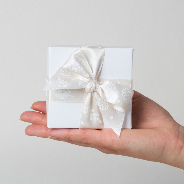 Die Pralinen sind in einer eleganten, weißen Schachtel verpackt, die mit einem weißen Festband gebunden ist, sodass das Geschenk bereit zum Verschenken ist. Dies ist die ideale Wahl für ein Osterpräsent, sowohl für die Familie als auch für Kollegen.