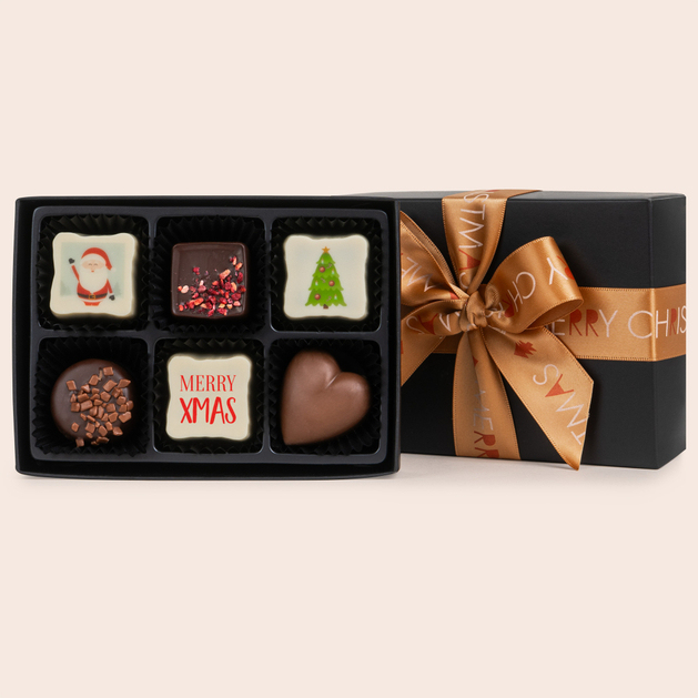 - Ein vielseitiges Geschenk – sechs Oxide Black XMAS L Weihnachtspralinen in elegantem, minimalistischem Design