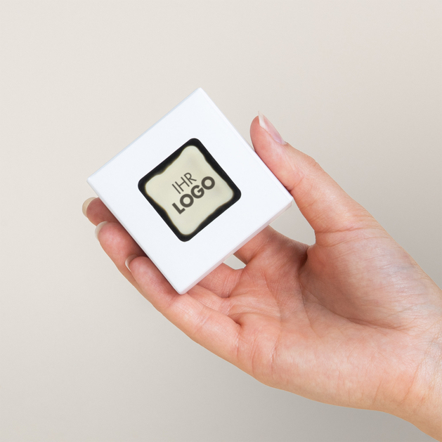 - Starker erster Eindruck – die Verpackung mit Sichtfenster präsentiert die Praline mit Ihrem Aufdruck vom ersten Moment an.