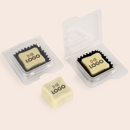- Praline mit Aufdruck (Logo, QR-Code, Grafik): ab 50 Stück Pralinen