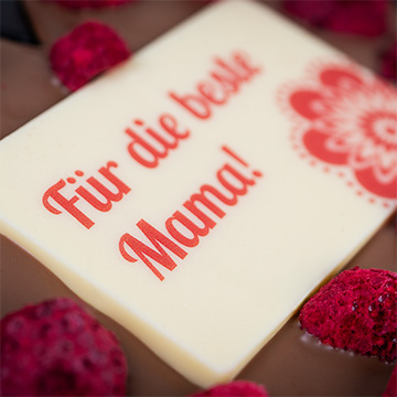 Die Süße der Himbeeren harmoniert perfekt mit der samtigen belgischen Milchschokolade und schafft eine einzigartige Geschmacksharmonie in einer herzförmigen Tafel. Ergänzt wird das Ganze durch zarte weiße belgische Schokolade mit einer Widmung an die wichtigste Frau in Ihrem Leben - so dass jeder Bissen ein Ausdruck von Liebe und Dankbarkeit ist.