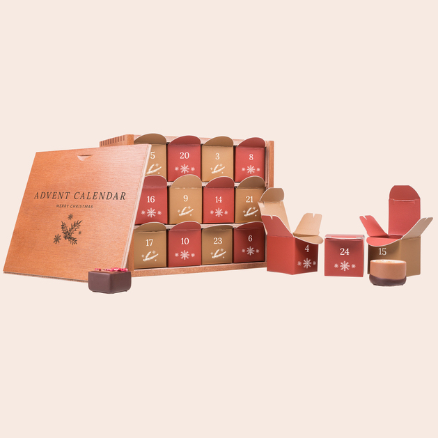 - Handgefertigte Pralinen aus alkoholfreier belgischer Schokolade – eine Fülle von Geschmacksrichtungen und eine Vielzahl von Füllungen, die jeden Tag im Dezember verschönern.