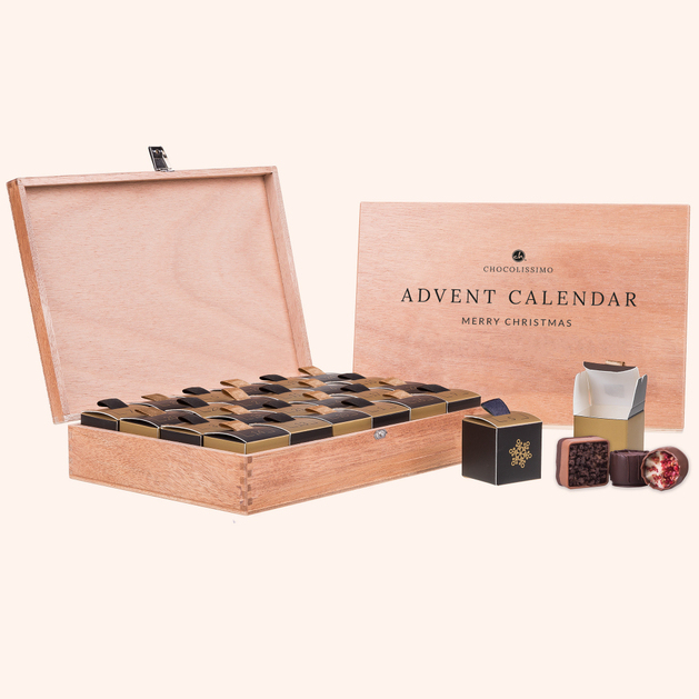 Weihnachts-Adventskalender in einer Holzbox mit Premium-Pralinen – warum gerade diesen?