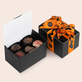 Halloween ist die perfekte Zeit, um einen Hauch von Grusel mit außergewöhnlicher Süße zu verbinden. Unsere 6 Kürbis-Pralinen mit Haselnussfüllung werden im Chocolissimo-Atelier unter der Aufsicht erfahrener Chocolatiers handgefertigt und verwenden ausschließlich belgische Schokolade höchster Qualität. Jedes Set wird kurz vor dem Versand verpackt, um maximale Frische und vollen Geschmack zu bewahren. Die elegante schwarze Schachtel mit einer orangefarbenen Schleife im Fledermaus-Design macht sie nicht nur köstlich, sondern auch zu Halloween zu einem echten Hingucker.Warum 6 Kürbis-Halloween-Pralinen Black L?