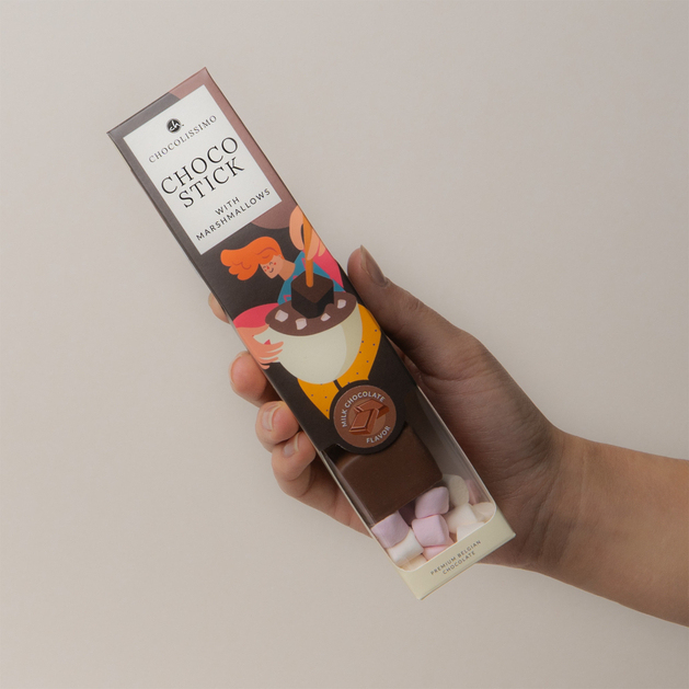 Tauchen Sie einen Milch-Schoko-Stick in eine Tasse warme Milch und lassen Sie die Schokolade langsam schmelzen, wodurch das Getränk einen samtig-milchigen Geschmack erhält. Vorsichtig umrühren, bis die Schokolade glatt und reichhaltig ist. Für einen intensiveren Effekt weniger Milch verwenden oder einen zweiten Stick eintauchen. Sie können das Getränk auch mit Schlagsahne garnieren oder mit Kakaopulver bestäuben – und einen Moment voller Schokoladengenuss genießen.Milk ChocoStick – Schmelzende Milchschokolade am Stiel mit Marshmallows