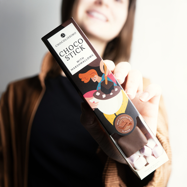 Hochwertige belgische Milchschokolade kombiniert mit köstlichen Marshmallows in Chocostick-Form ist die perfekte Wärmequelle an kalten Abenden. Einfach in heiße Milch tauchen und ein samtig-cremiges Getränk kreieren, das Sie mit Geschmack umhüllt und Ihnen einen Moment süßen Genusses beschert. So erleben Sie schnell und köstlich die wahre Magie belgischer Schokolade bequem von zu Hause aus.