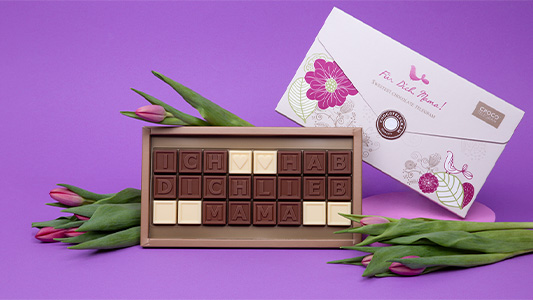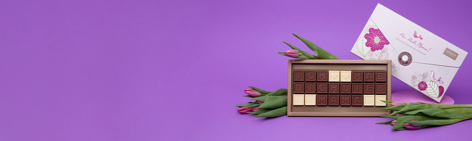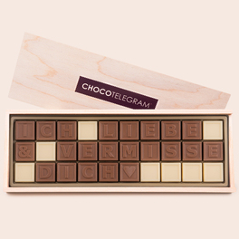 ChocoTelegram® ist die süßeste Art, eine persönliche Nachricht zu übermitteln. Entscheiden Sie sich für einen unserer Vorschläge oder kreieren Sie Ihren eigenen Text aus feinster Schokolade und überraschen Sie Ihre Liebsten mit einem außergewöhnlichen Geschenk. Zeigen Sie Ihre Originalität und sorgen Sie dafür, dass Ihre Worte wirklich süß schmecken!