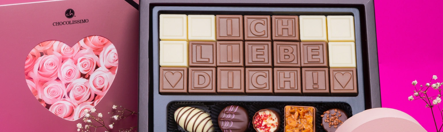 Wählen Sie ein Holzkästchen mit Gravur, Pralinen mit Foto oder ein ChocoTelegram!