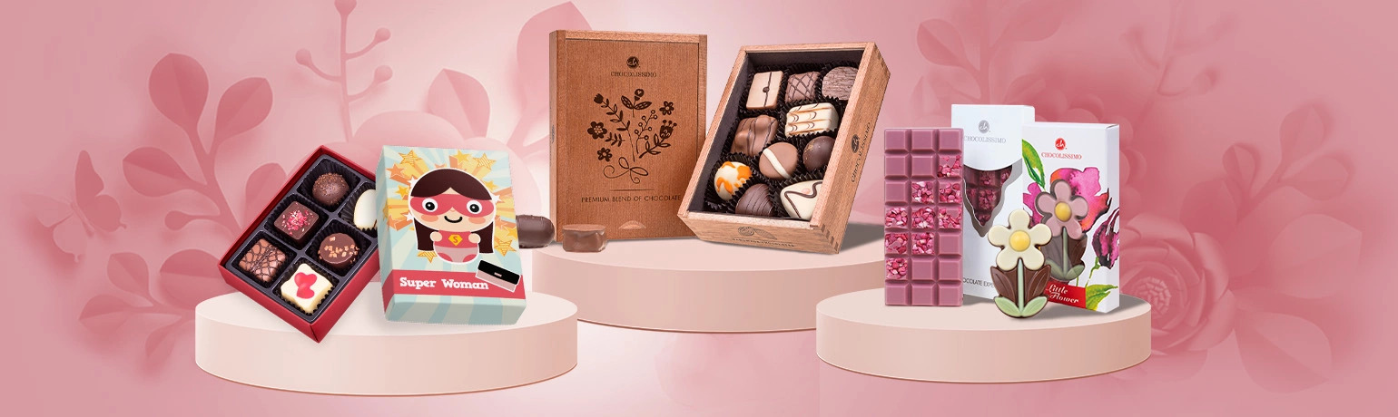 Zeigen Sie den Frauen in Ihrem Alltag, wie viel sie Ihnen bedeuten. Elegante Pralinen, Schokoladenblumen und sorgfältig gefertigte Figuren sind eine stilvolle Art, Ihre Wertschätzung auszudrücken.