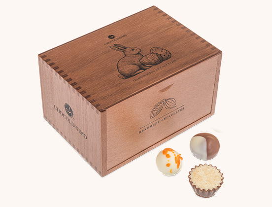 Schenke deinen Liebsten ein luxuriöses Geschenk zu Ostern. Unsere besondere Schatulle aus okoumé Holz aus Gabun verbirgt 20 exquisite Pralinen, die unter der Aufsicht der besten europäischen Chocolatiers hergestellt wurden. Jede Praline ist eine Kombination aus samtiger belgischer Schokolade und sorgfältig ausgewählten Füllungen, die im Mund schmelzen und unvergessliche Geschmackserlebnisse bieten.