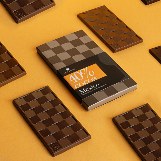 Greife zur Vollmilchschokolade mit 40 % Kakao aus Mexiko und entdecke, wie Tradition und Moderne zu einer unvergesslichen Schokoladenreise verschmelzen.