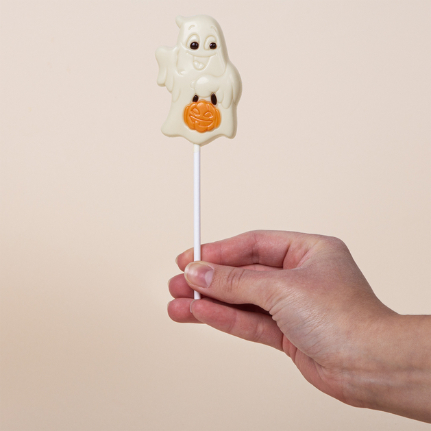 Suchen Sie ein charmantes und zugleich originelles Halloween-Geschenk? Unser weiße Schokoladen-Geister-Lolli ist die perfekte Kombination aus zarter, samtiger Süße und verspieltem Design. Die Basis besteht aus hochwertiger belgischer weißer Schokolade, und die Details – wie Kürbis und Umrisse – sind aus dunkler Schokolade gefertigt und sorgen für Kontrast und Charakter. Jeder Lolli wird unmittelbar vor dem Versand in dekoratives Geschenkpapier verpackt, um maximale Frische und sofortige Geschenkbereitschaft zu gewährleisten. Er ist eine großartige Wahl für kleine und große Halloween-Liebhaber.Warum ein weiße Schokoladen-Geister-Lolli?