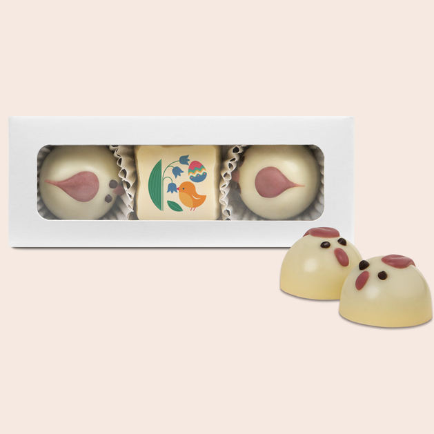 3 Osterpralinen – 2 Kükenpralinen und 1 Osterpraline, die für festliche Freude sorgen