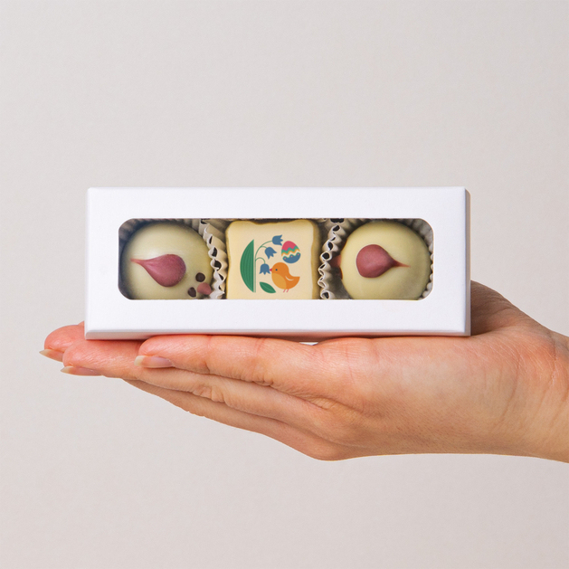 Möchten Sie etwas Symbolisches schenken, das zugleich wirklich besonders ist? Unsere 3 Osterpralinen – 2 Kükenpralinen und 1 Praline mit Aufdruck – sind mehr als nur eine süße Kleinigkeit. Sie sind ein elegantes, sofort bereit zum Verschenken Präsent, das Freude bereitet, die festliche Stimmung unterstreicht und lange in Erinnerung bleibt.