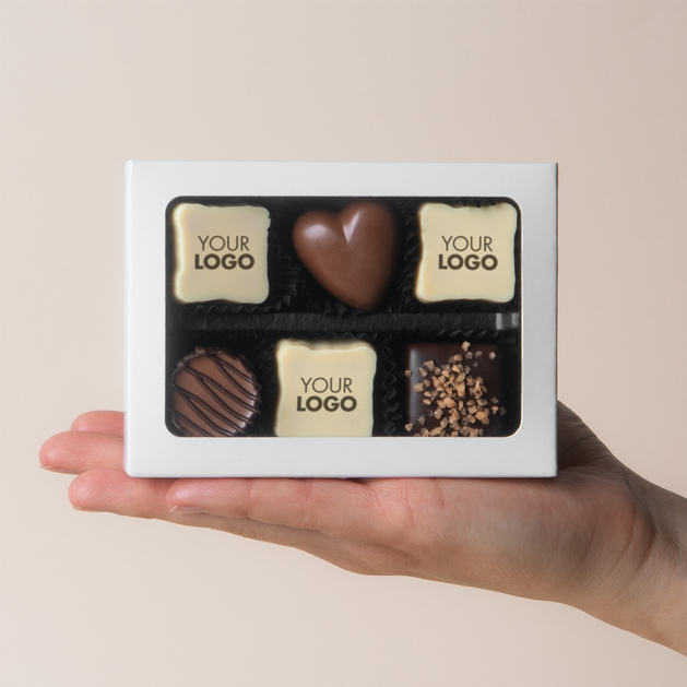 - Sechs Pralinen mit Wow-Effekt – größeres Format, stärkerer Eindruck, mehr Gelegenheiten, sich an Ihre Marke zu erinnern.